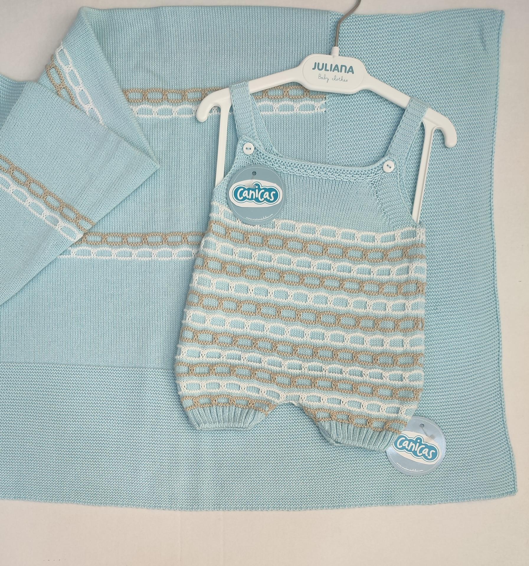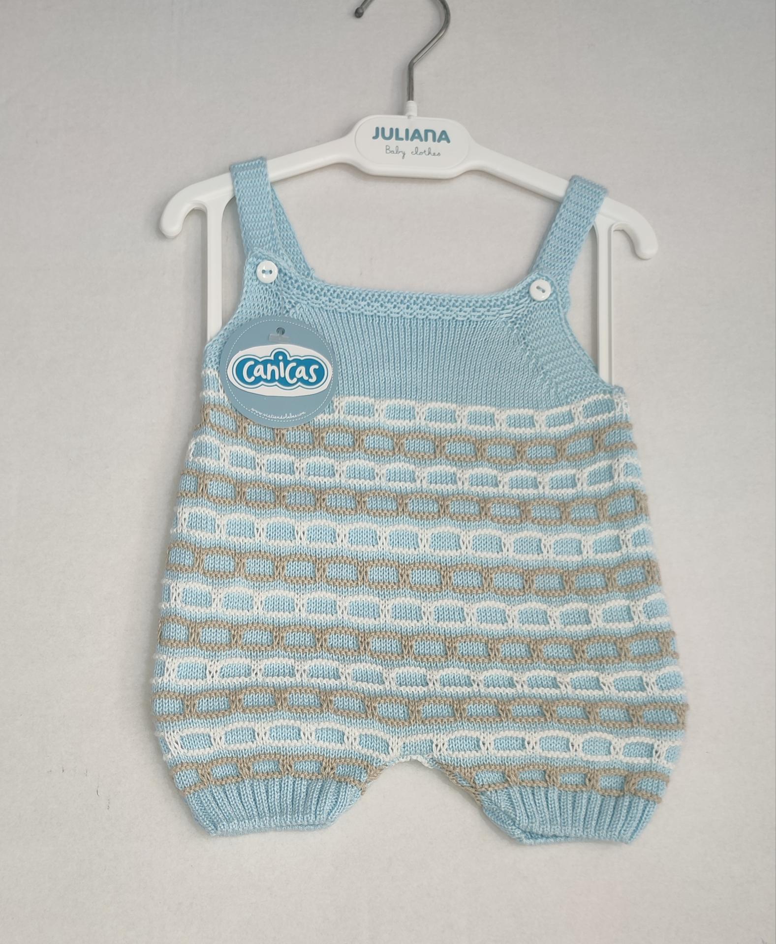 Pelele de tirantes en hilo tricolor. Fabricado en España 100%. Colección Juliana ropa bebé primavera verano.
