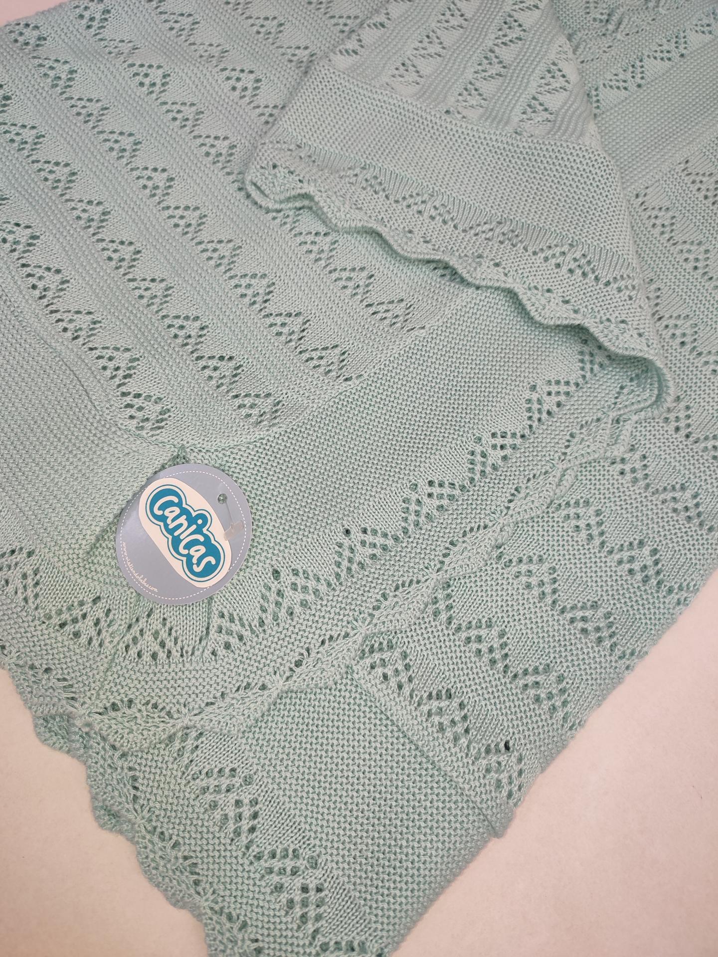 Chal con volante calado de verano UNISEX confeccionada con hilo, una fibra natural hipoalergénica, muy bien tolerada por la piel de los bebés recién nacidos, incluso las pieles más delicadas.