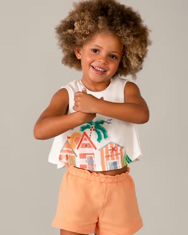 Original conjunto para niña formado por unos shorts y camiseta sin mangas. Confeccionados con un tejido suave y fresco de punto de algodón.