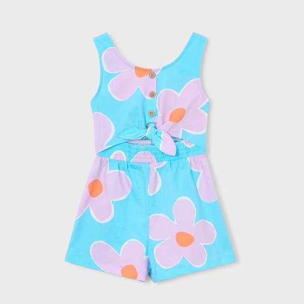 Mono de tirantes para niña confeccionado en cómodo y fresco tejido punto de algodón.