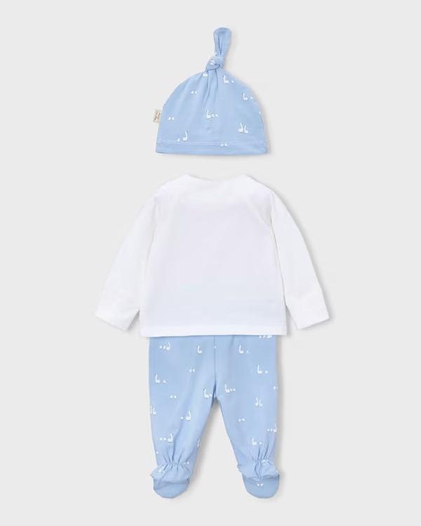 Conjunto de 3 piezas para bebé recién nacido, ideal para regalo compuesto camiseta, gorro y polaina a juego confeccionado con tejido de algodón elástico.
