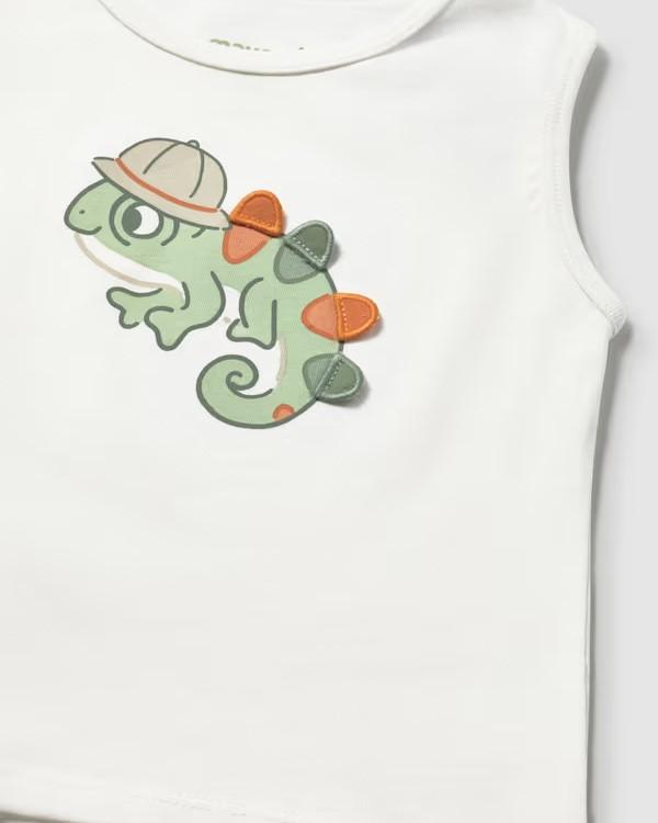 Conjunto de camiseta tirantes camaleón y bermuda estampada en punto de algodón para bebé niño. Colección verano.