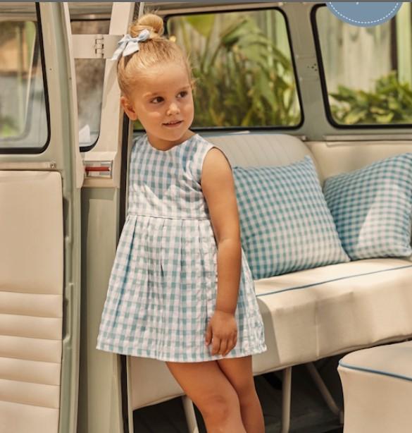 Vestido para bebé estampado cuadros vichy destacando por su bonito escote en la espalda.
