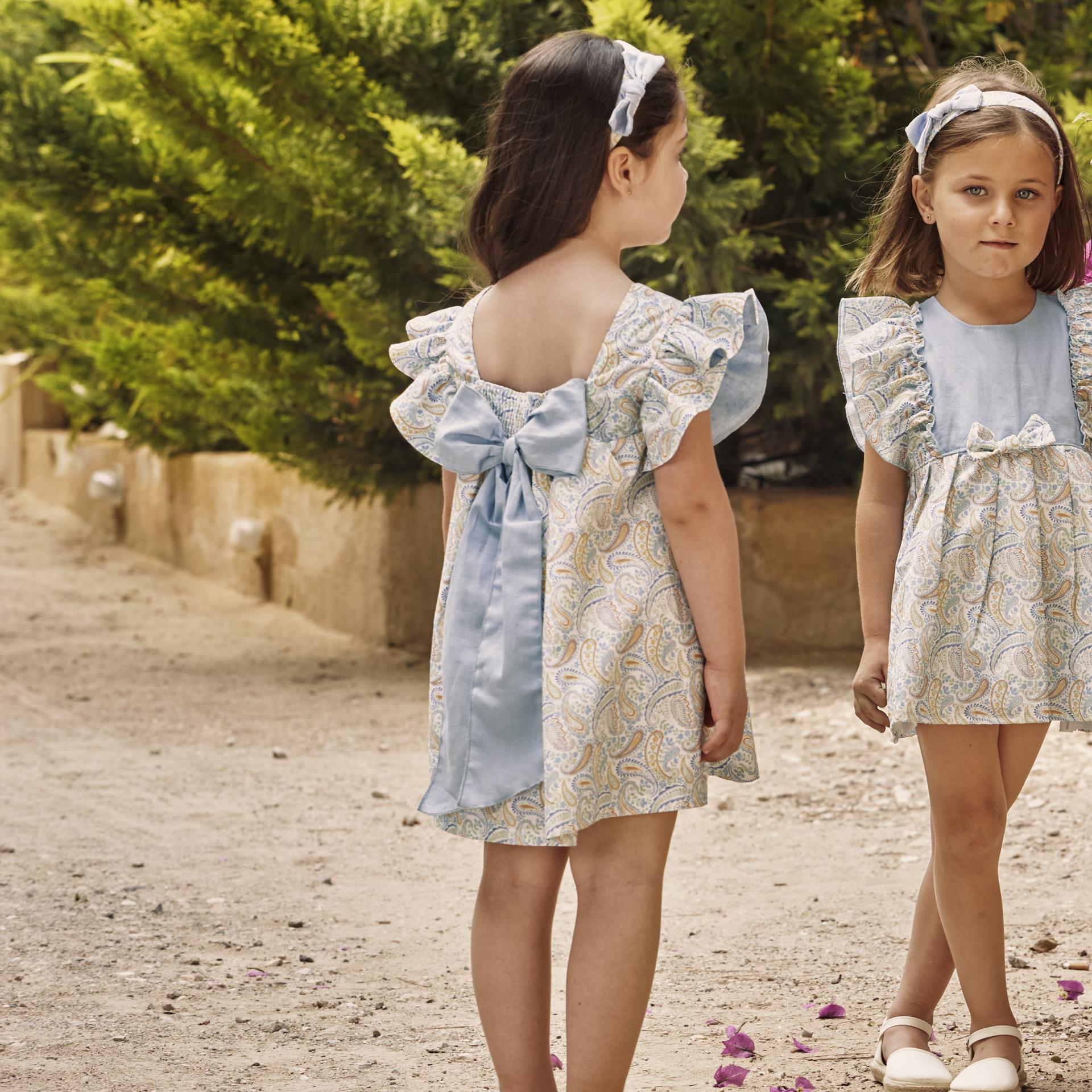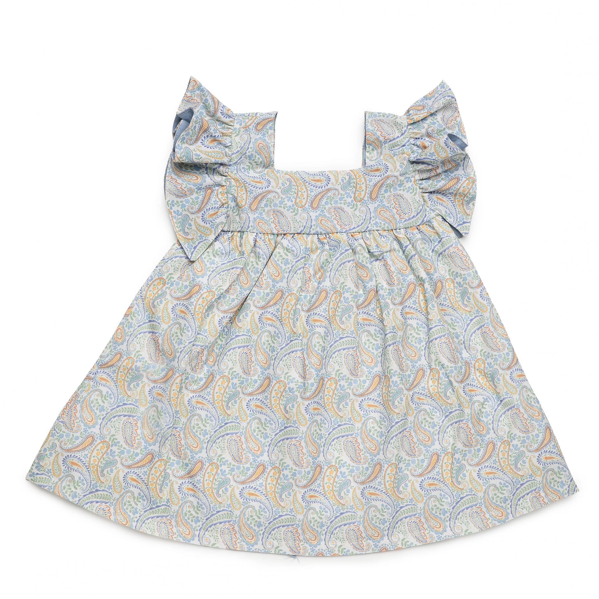 Vestido para bebé estampado cachemiras destacando por su bonito escote en la espalda adornado con lazo.