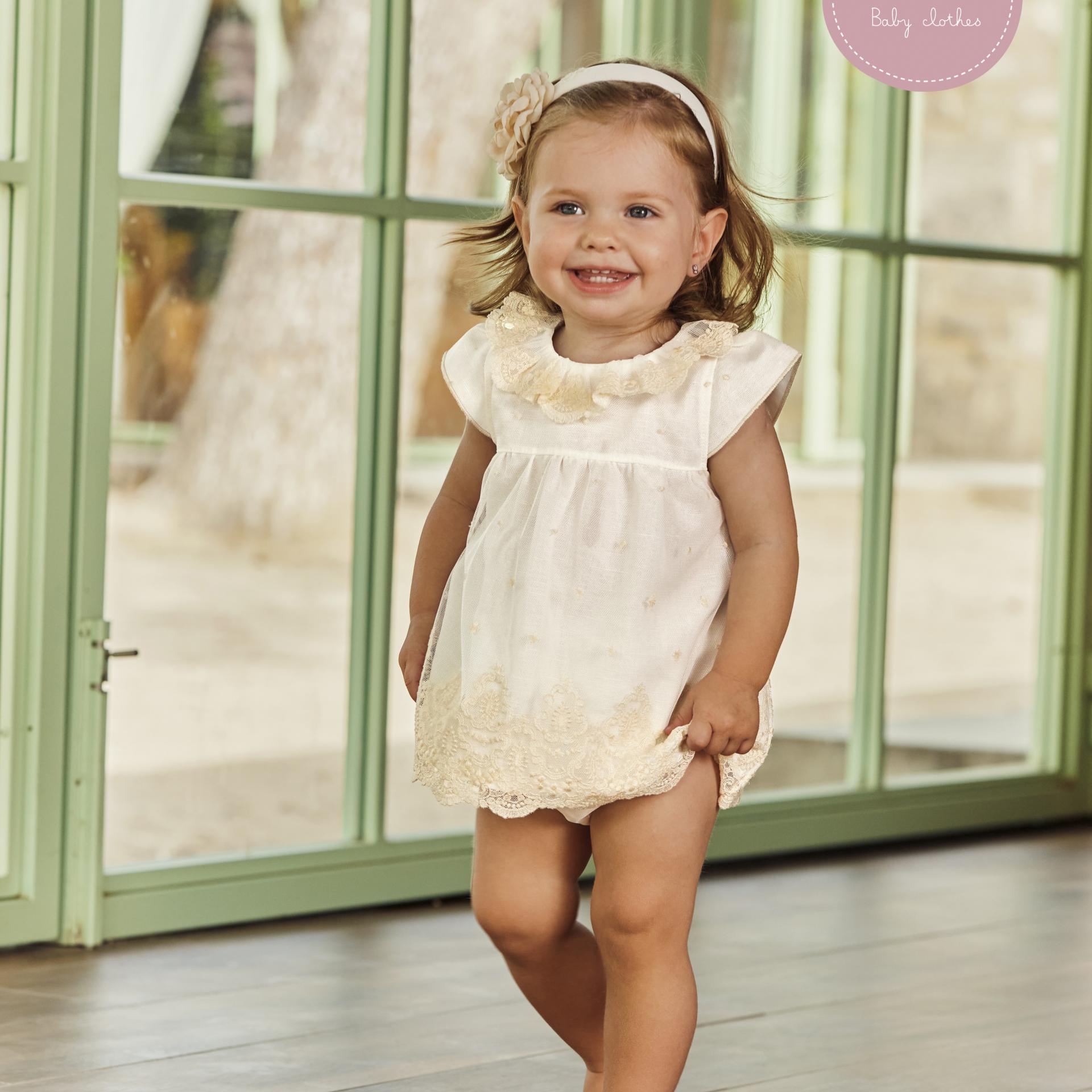 Precioso vestido corto y braguita sin mangas para bebé niña de la colección primavera-verano.
